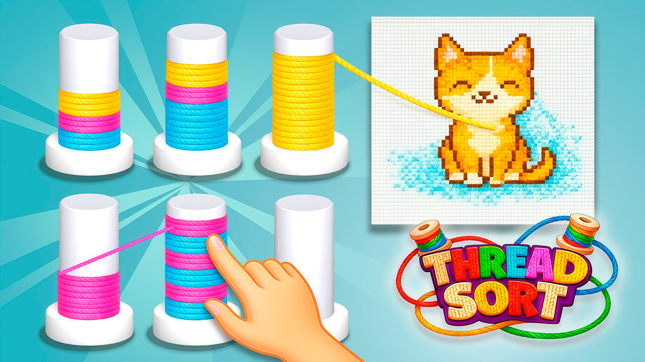 Сортировка ниток — это уютная и весёлая головоломка, где ты приводишь в порядок разноцветные нитки на катушках, чтобы создать милые вышитые картинки. Твоя задача — разложить запутанные нитки по цветам, освободить колышки и увидеть, как аккуратные ниточки сами вышивают симпатичное изображение на холсте. Игра с уютной графикой, плавной анимацией и простым управлением — отлично подходит для всех, кто любит сортировать, вязать или просто расслабляться.